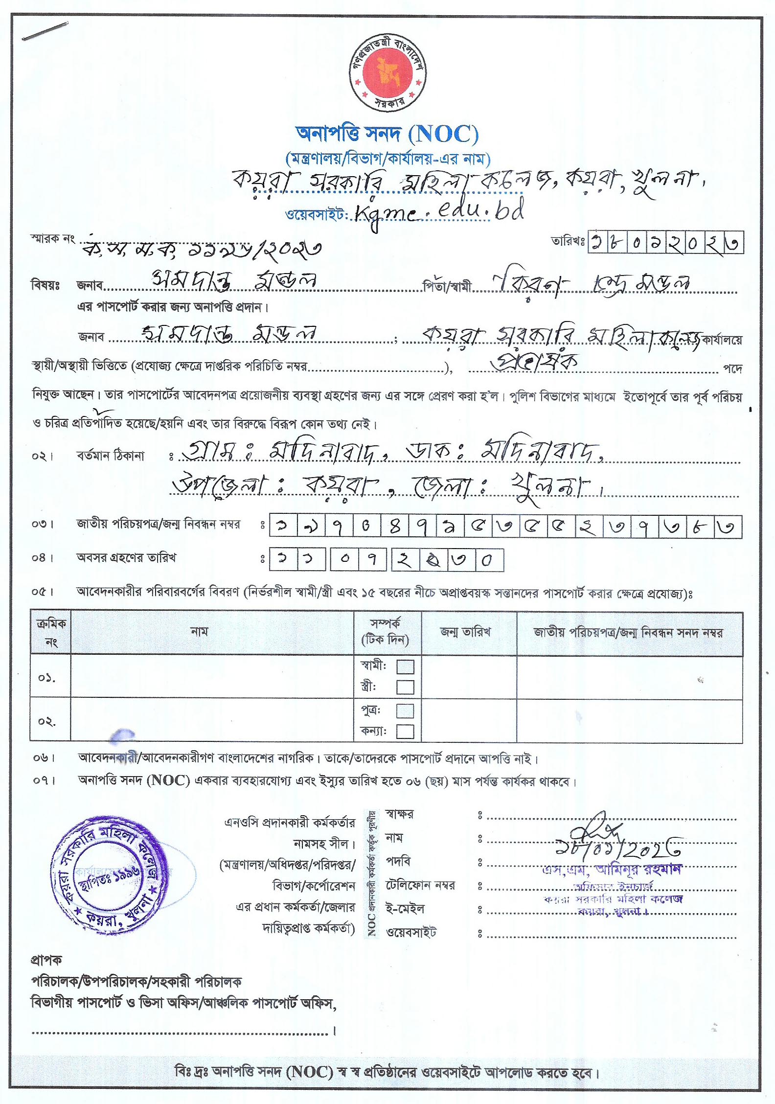 NOC of সমদান্ত মন্ডল